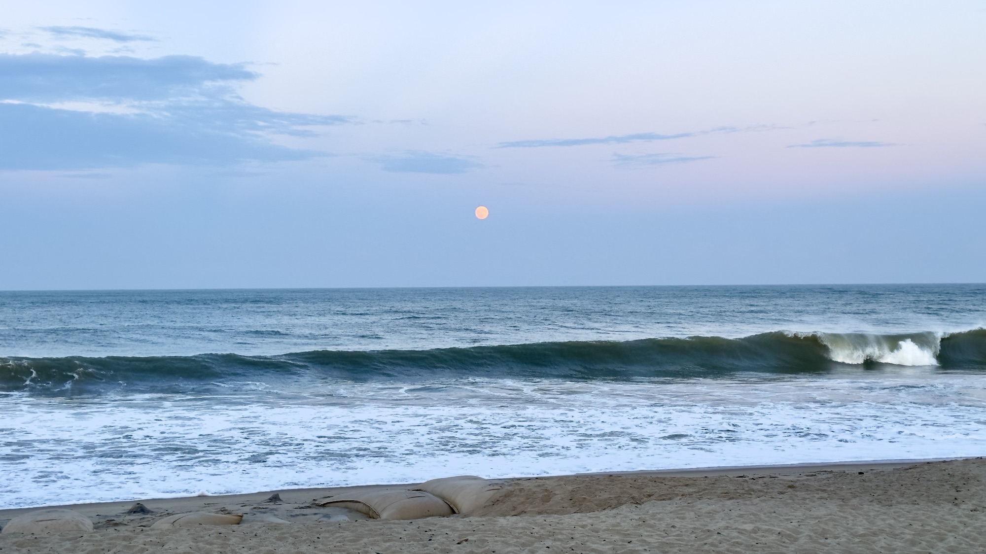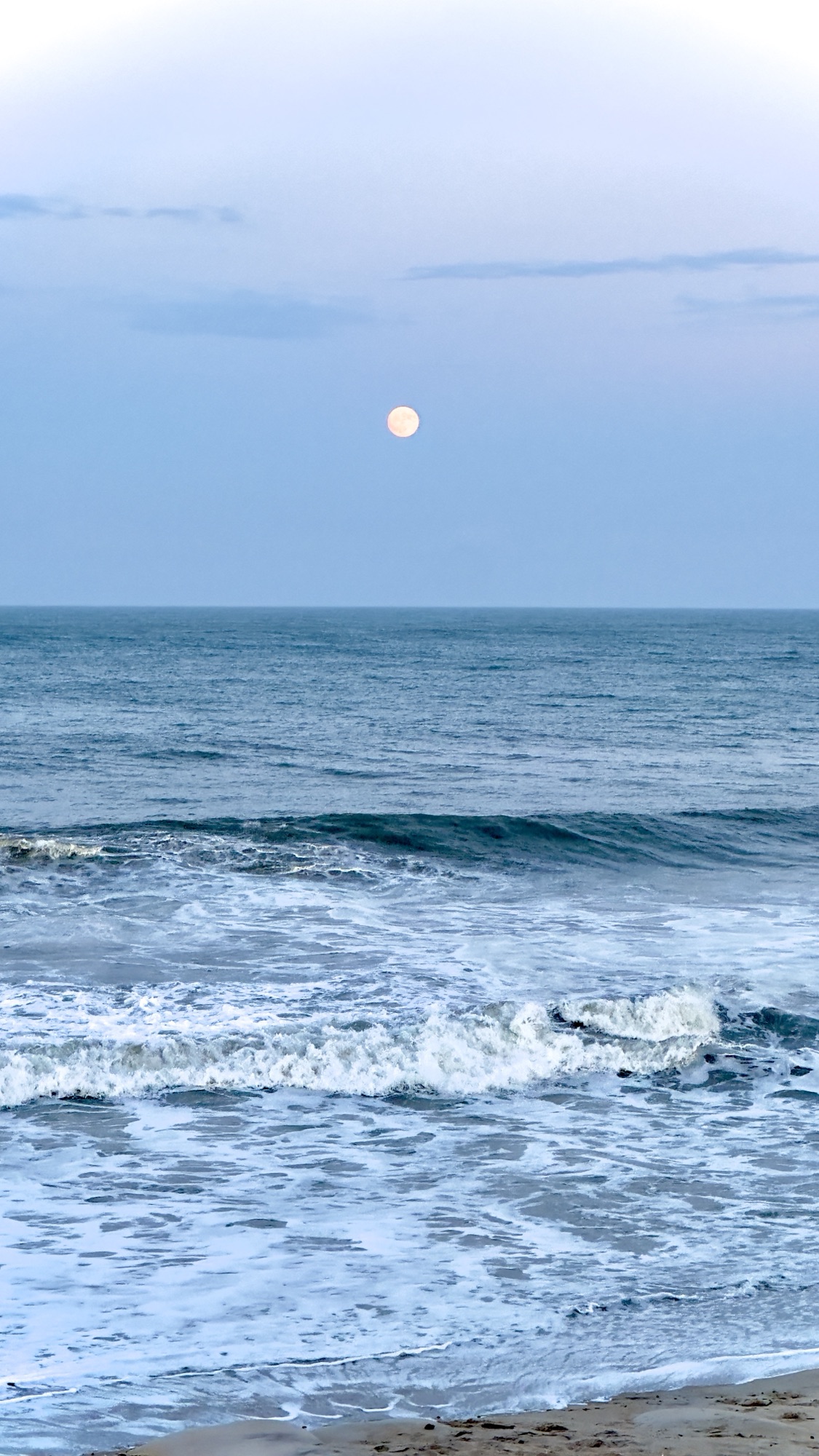 Moonrise over the Atlantic Ocean at Lighthouse View Oceanfront Lodging on Hatteras Island, NC.