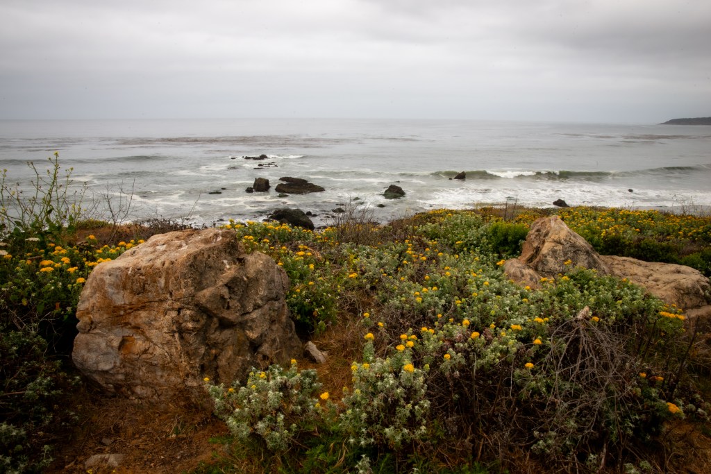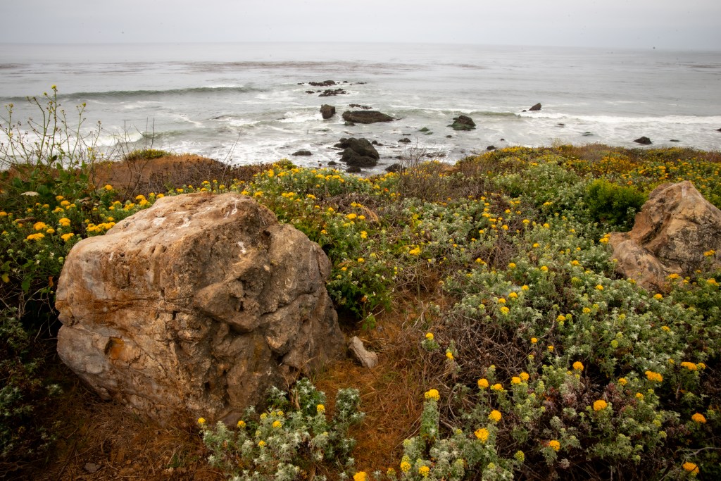 I camped for a few days at Hearst San Simeon, and this quickly became a place of rest and peace. One day I parked with my hatch-back facing the ocean so I could sit and relax overlooking the Pacific Ocean. Who would have guessed that walking the beaches here would take me back to childhood and I become a rock collector again. Crossing over the mountains to the coast of California was like entering into a completely different ecosystem from the rest of the dry hot Californian landscape.